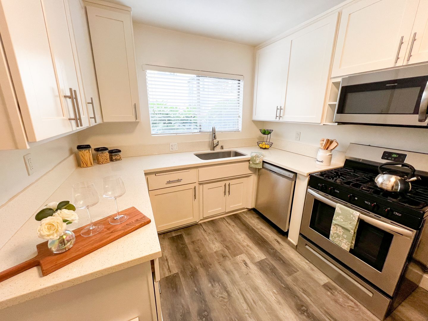 Experience stylish living in this beautifully updated 2 bedroom unit featuring sleek stainless steel appliances and a bright, modern design. Enjoy the serene pool view and the convenience of being just steps from the shops and dining of Valley Village. Air Conditioning and Ample parking included for your comfort.